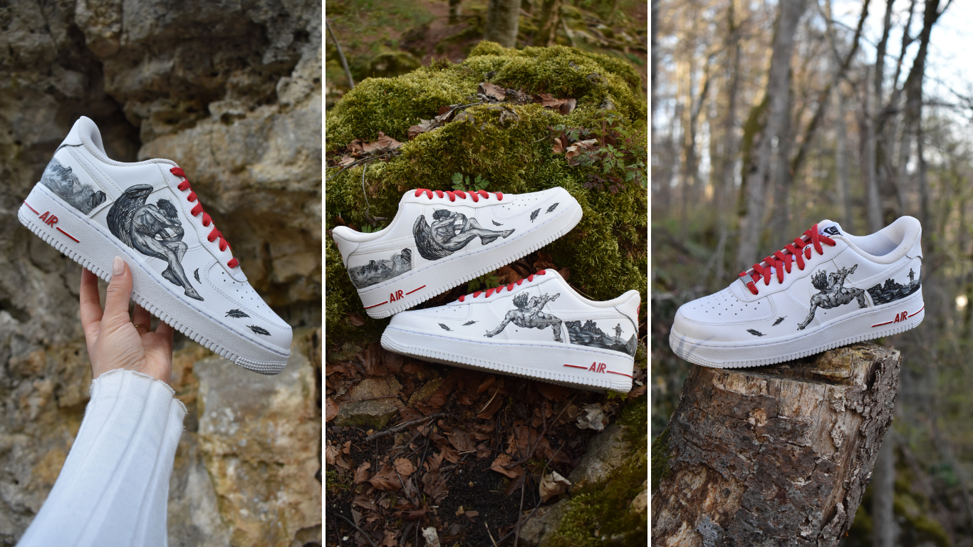 Nach der Bemalung wird jeder Sneaker mit einer hochwertigen Schutzschicht versiegelt. Diese Veredelung schützt das Design zuverlässig vor Feuchtigkeit und alltäglicher Beanspruchung.