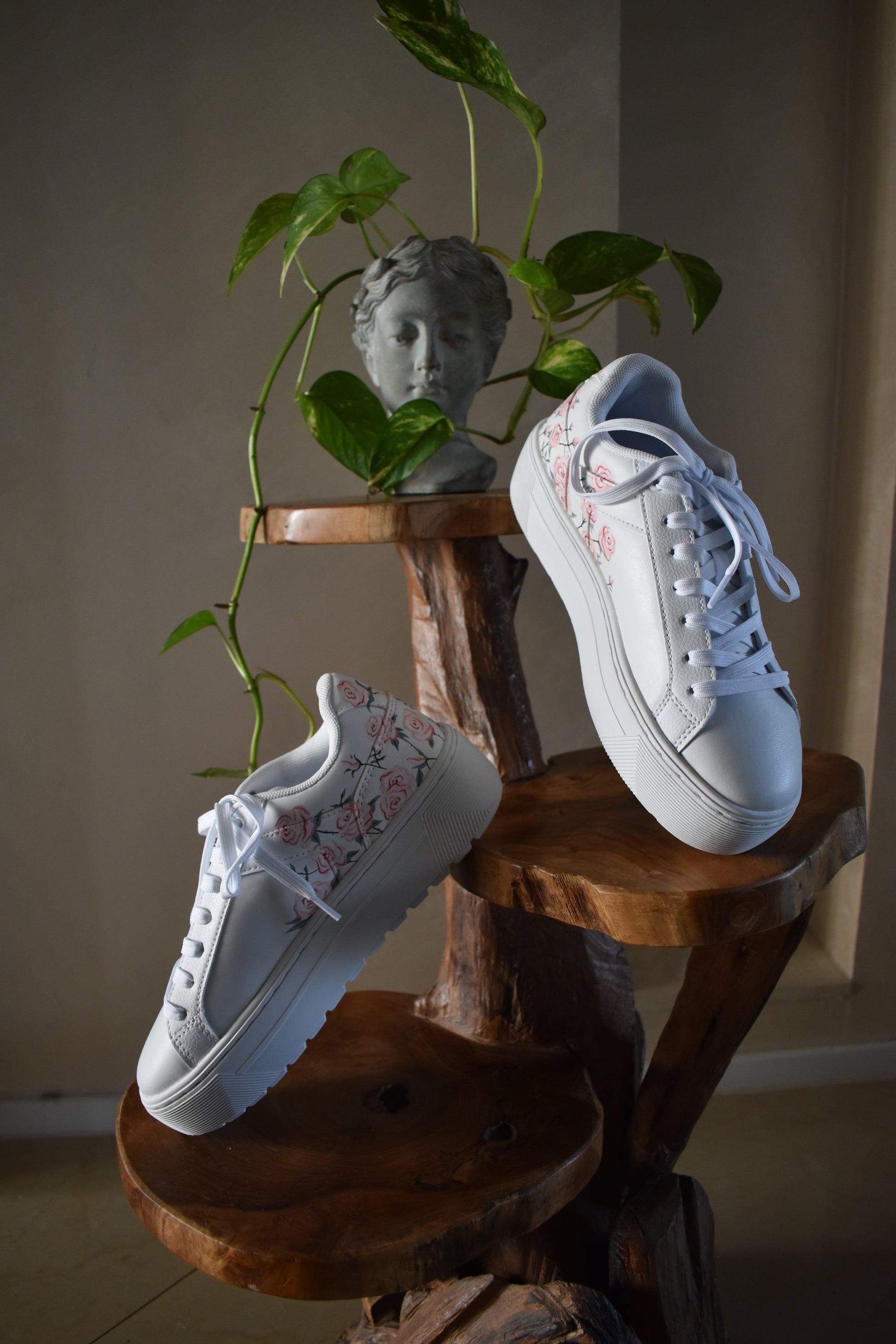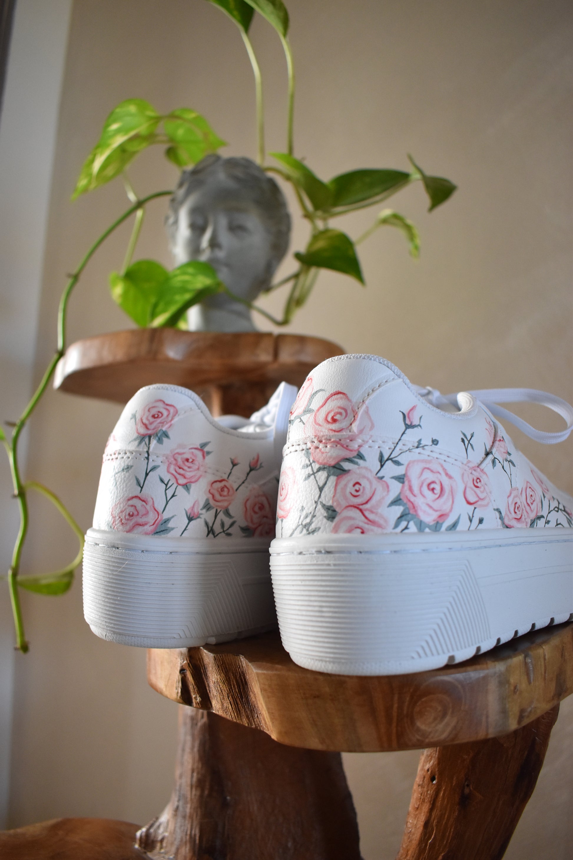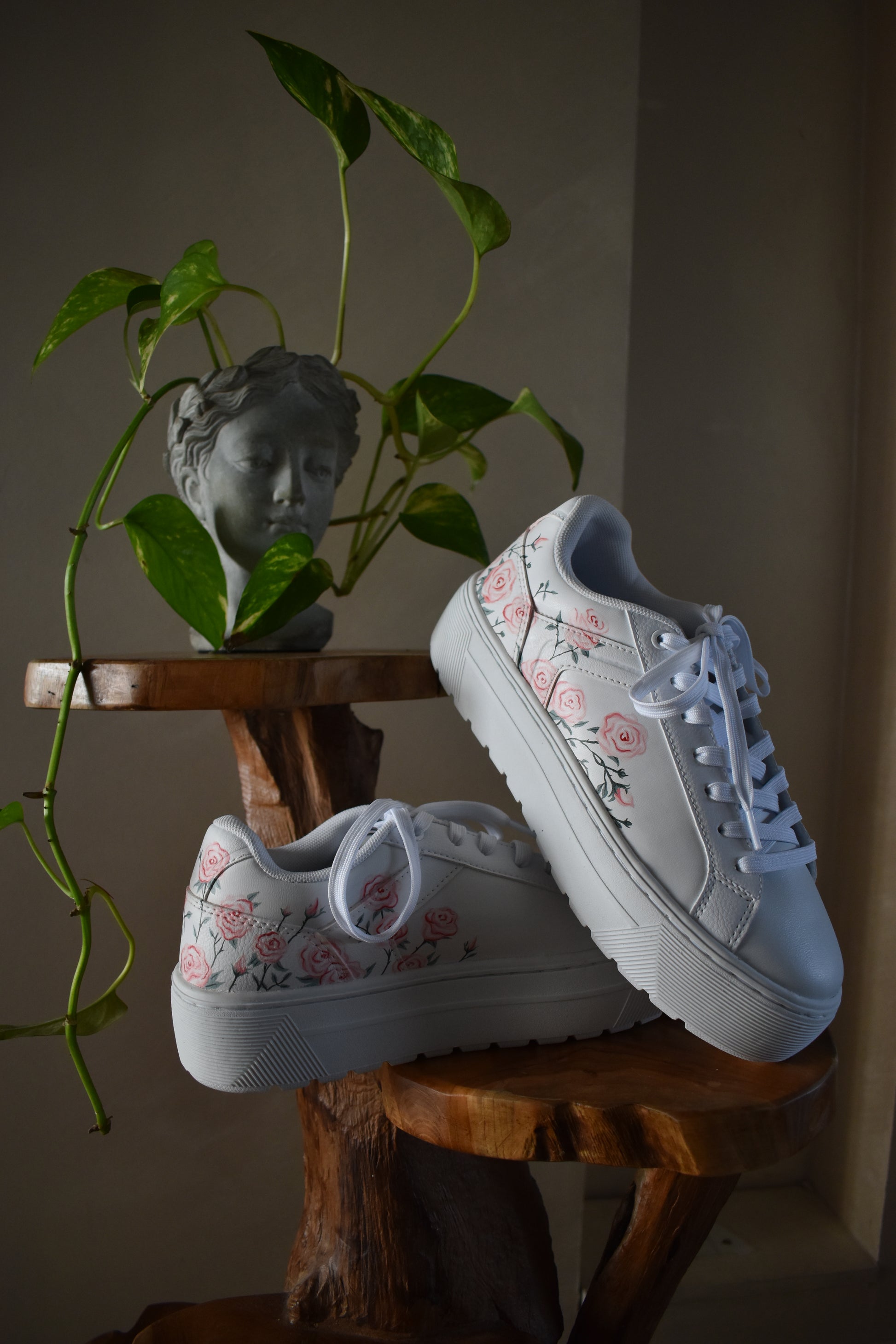 Dieses Design wird auf einem Nike Air Force 1 angewendet, kann daher Abweichungen zu gezeigten Bildern aufweisen. Bsp.: Die kleine Mini-Rose wird unterhalb der Schnürung angesetzt.